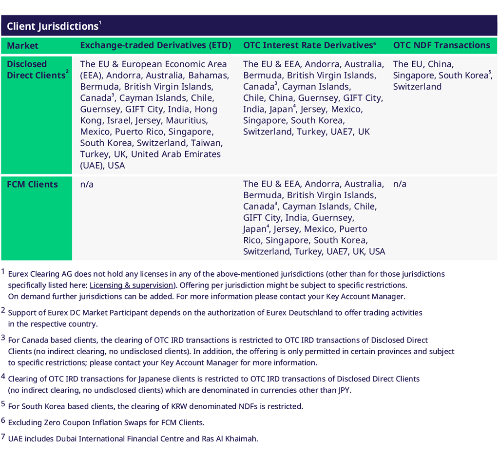 Eligible for the Clearing of Eurex Transactions, OTC Interest Rate Derivative Transactions and OTC NDF Transactions