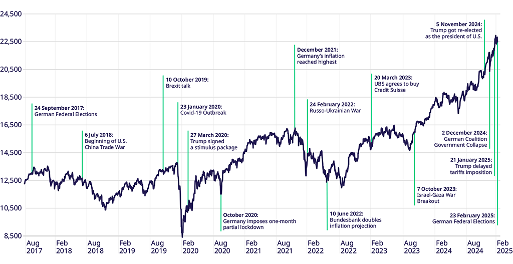 In comparison to the micro contract, the Mini-DAX® is well-suited for investors with a higher risk appetite and traders seeking for higher potential returns on price movements without committing to the full capital requirement of DAX® Futures. Investors will gain access to the DAX® index, which comprises the 40 largest and most actively traded German companies, including Mercedes-Benz Group, Deutsche Bank, BMW, Bayer, Adidas, and SAP.
