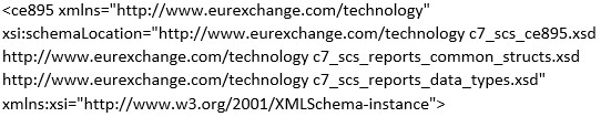 Based on positive Member feedback, it has been decided to introduce minor adjustments to the XML header structure for C7 SCS reports. The header formats of currently existing reports were adapted to fit to the definition provided by XSD schemata, which indicates also the use of xmlns-tag.