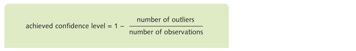 For instance, the achieved confidence level for equity derivatives of 99.68 results from dividing the number of outliers across all equity derivatives portfolios by the number of observations collected for all equity derivatives and subtracting it from 1.
