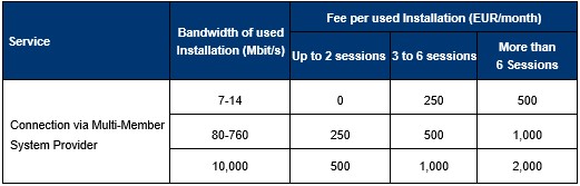 Currently, the differing allocation of fees for bandwidth depending on the number of sessions will be harmonized. For a bandwidth of 10,000 Mbit/s, the same allocation as for smaller bandwidths will be applied, i.e. (i) up to two sessions, (ii) three to six sessions and (iii) more than six sessions.