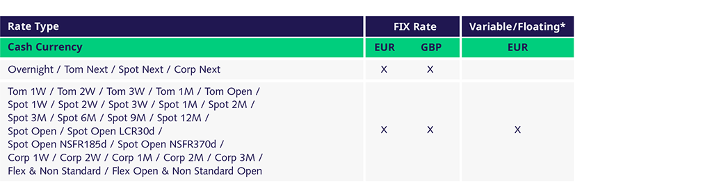 Please note, open repos, floating rate repos and GC Pooling transactions are currently out of scope. Release of new features based on client demand.
