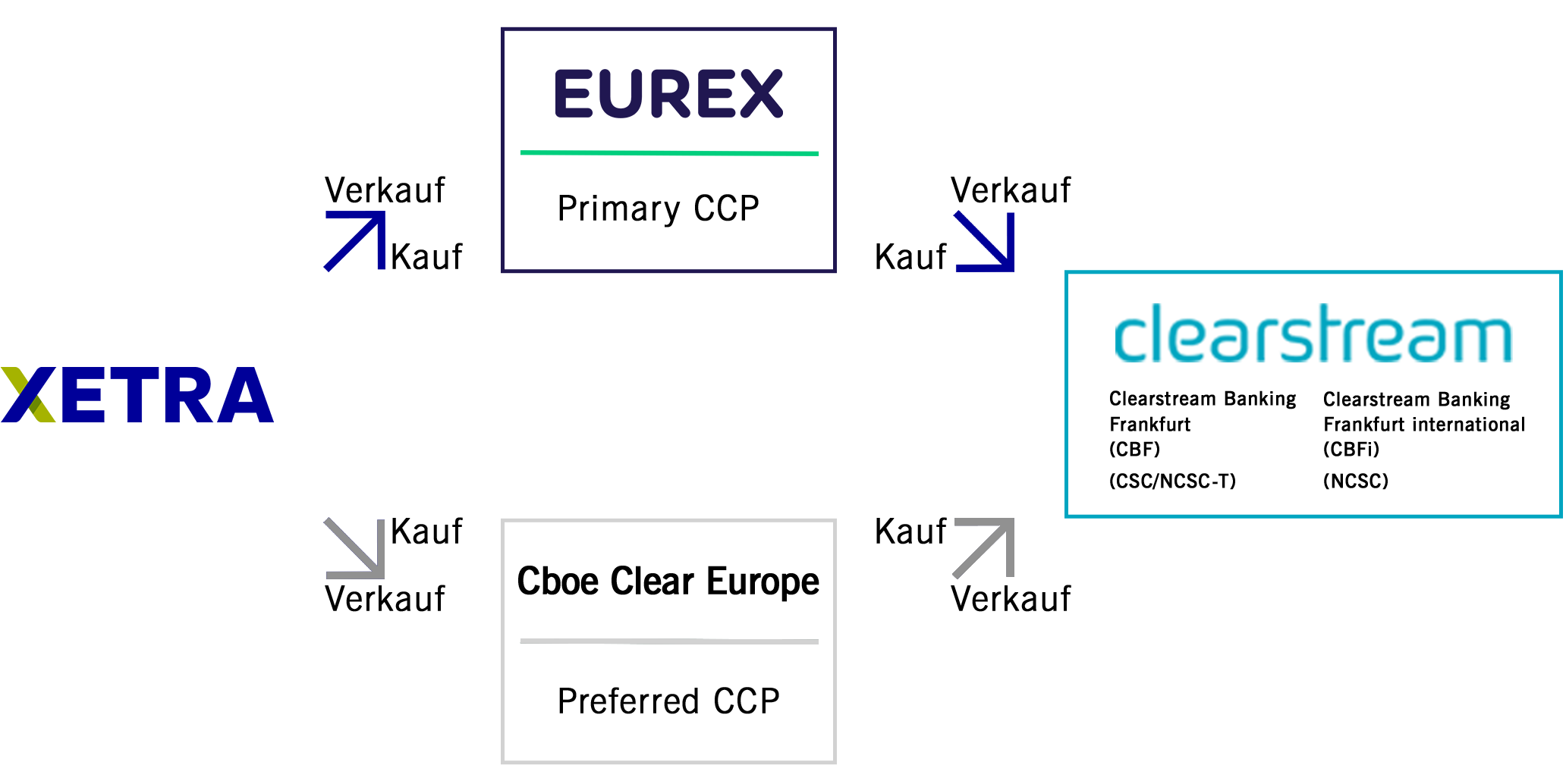 Für das Clearing von Aufträgen, die an dem Handelsplatz Xetra ausgeführt werden, können Handelsteilnehmer für ausgewählte Instrumente neben der Eurex Clearing AG (Primary CCP) auch die Cboe Clear Europe N.V. als ihren Preferred CCP benennen.